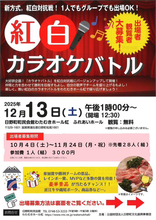 熱い紅白のバトルをわたむきホール虹で繰り広げましょう!!